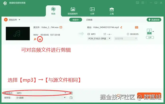 数据 蛙视频转换器在音频转换上表现出色,它支持多种音频格式的转换,转换过程简单易懂,用户只需几步操作即可完成。该软件能确保转换后的音频质量高且稳定,不会出现音质受损或文件损坏的情况。用户可以对原始音频文件进行剪辑加工,为自己的文件锦上添花。软件还提供批量转换功能,可一次性处理多个文件,大大提高了工作效率。基于以上优点,我们强烈推荐用户使用该视频转换器进行音频格式的转换。