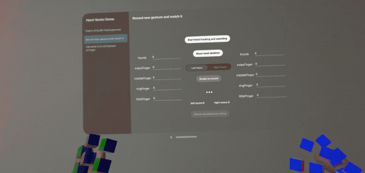 采用余弦相似度算法准确度较高,但其中的参数难以理解,也几乎无法调整。为此,我参考 Unity 的 XRHands 框架,新增了 FingerShape 功能。