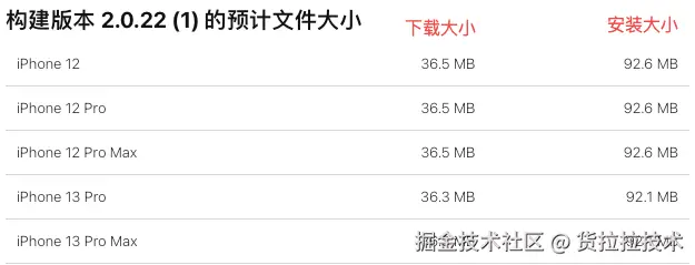 App Store Connect后会进行APP Thinning处理,生成设备所需的特定架构和资源的变体版本。 - 下载大小: 是变体版本经过压缩的版本,是实际下载的大小。