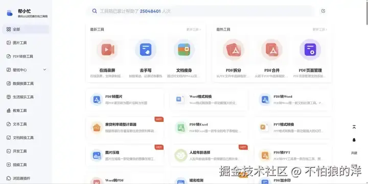 包含图片工具、PDF 工具、壁纸、开发工具等等。