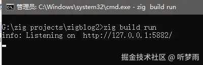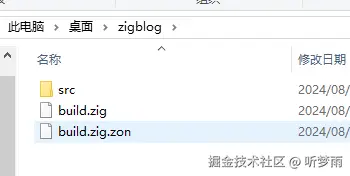 桌面新建一个空文件夹zigblog,打开该文件夹右键打开cmd(没有的请自行cd到该目录),cmd执行命令zig init初始化项目,结果如下图