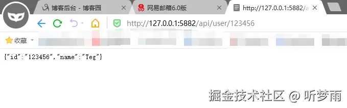 zig build run进行依赖下载(从github下载,可能需要科学.上网)、编译、运行,如图,我们打开浏览器访问http://127.0.0.1:5882/api/user/123456可查看到api访问成功了。