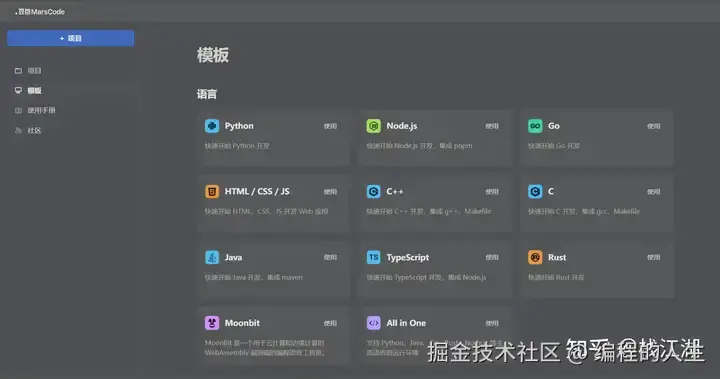 项目模板目前支持Python、Go、Java等语言,还支持不少Web开发的框架