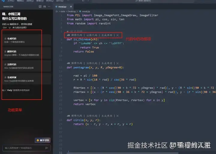 AI助手也是提供生成代码、解释代码及注释代码等功能
