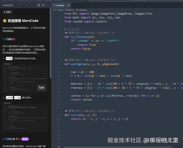 MarsCode 是豆包旗下的智能编程助手,提供以智能代码补全为代表的核心能力,支持主流编程语言及 IDE,能在编码过程中提供单行或整个函数的建议,同时支持在用户编码过程中提供代码解释、单测生成、问题修复、技术问答等辅助功能,提升编码效率与质量。