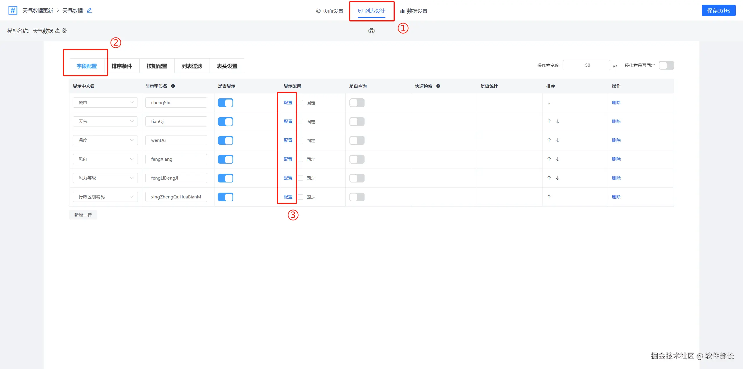 ③第三步:选择字段的显示配置,在字段的显示配置中可以配置其他模型显示在此字段后。