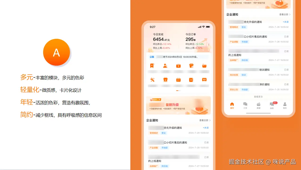 还记得上文提到的我们对加盟商的年龄分层所进行的调研吧?这一调研主要是用于精准定位产品 UI 的设计风格。在这里,根据调研结果,通过对加盟商年龄分布情况的深入分析,我们充分考虑了不同年龄段用户的审美偏好和使用习惯,力求打造出既符合用户需求又具有独特魅力的产品界面。这两款设计方案在色彩搭配、图标设计、布局规划等方面都有着各自的特点和优势,旨在为用户提供更加舒适、便捷的视觉体验和操作感受。