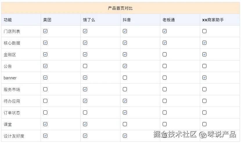 这里我选取当前 “xx商家助手” 的首页与其他产品的首页,进行产品层面和功能层面对比分析进行举例。