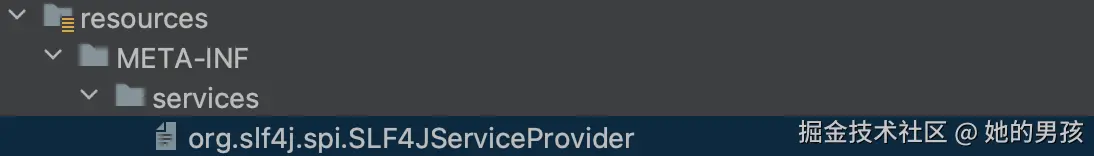 spi配置,services下添加文件:org.slf4j.spi.SLF4JServiceProvider,文件内容如下: