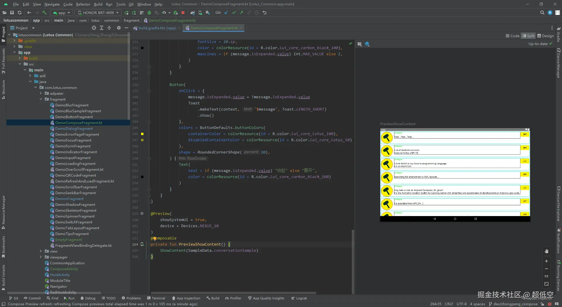 可组合性: Jetpack Compose允许开发者将UI组件拆分为较小的可组合部件,然后将它们组合成更大的UI组件。这样,开发者可以更容易地管理和共享UI代码
