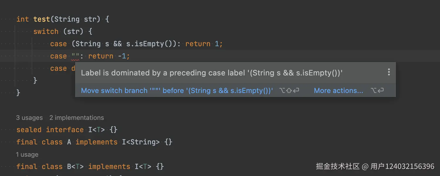 在JDK 17中引入的Switch表达式模式匹配规范这次也已经更新,在该版本的IntelliJ IDEA已支持这两种基本更新。