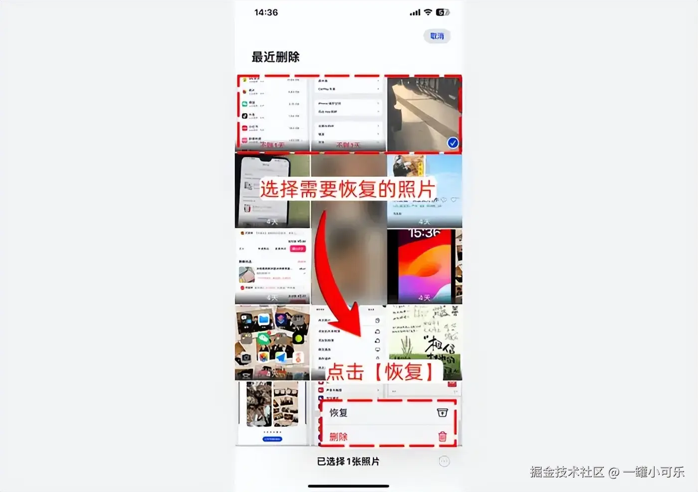 方法一:在手机【最近删除】中恢复删除的照片