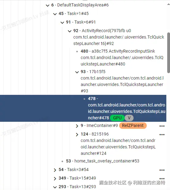 发现虽然Launcher是可见的,但是它在SF侧仍然是出于TaskDisplayArea的bottom的,而在WMS侧,它在WindowContainer层级结构中是处于TaskDisplayArea的top的。