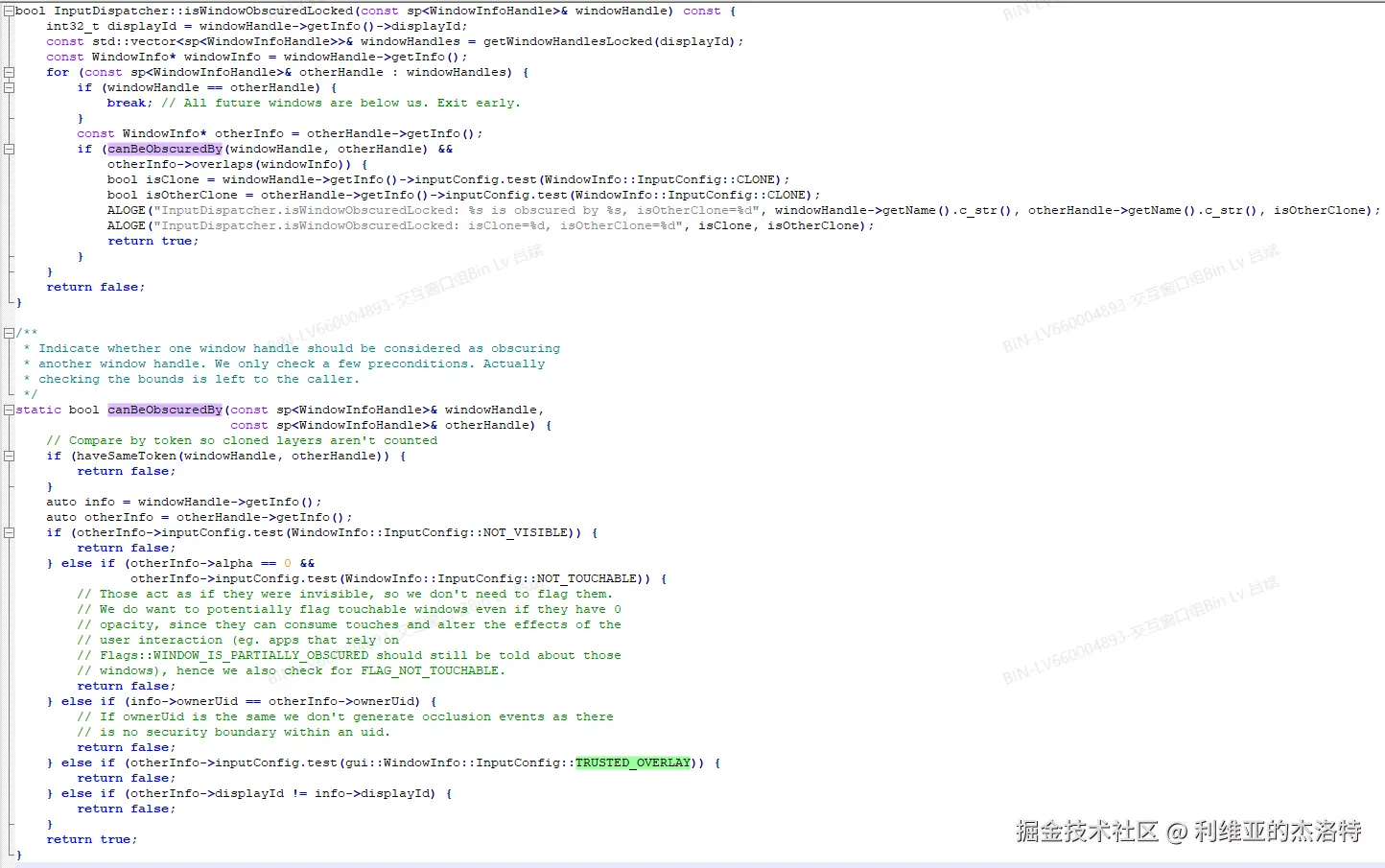 如果InputDispatcher.isWindowObscuredLocked返回true,那么就表示找个窗口被遮挡,就要为找个窗口对应的WindowInfo添加WINDOW_IS_PARTIALLY_OBSCURED标志位。