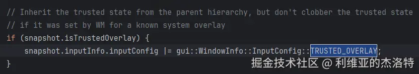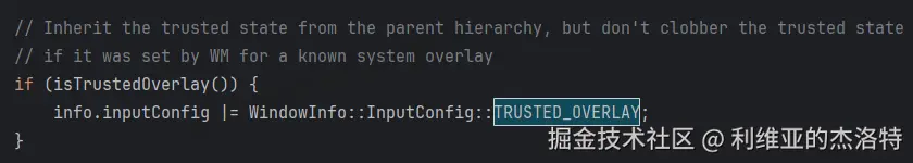 搜索代码,查看为WindowInfo添加TRUSTED_OVERLAY的位置主要是两处: