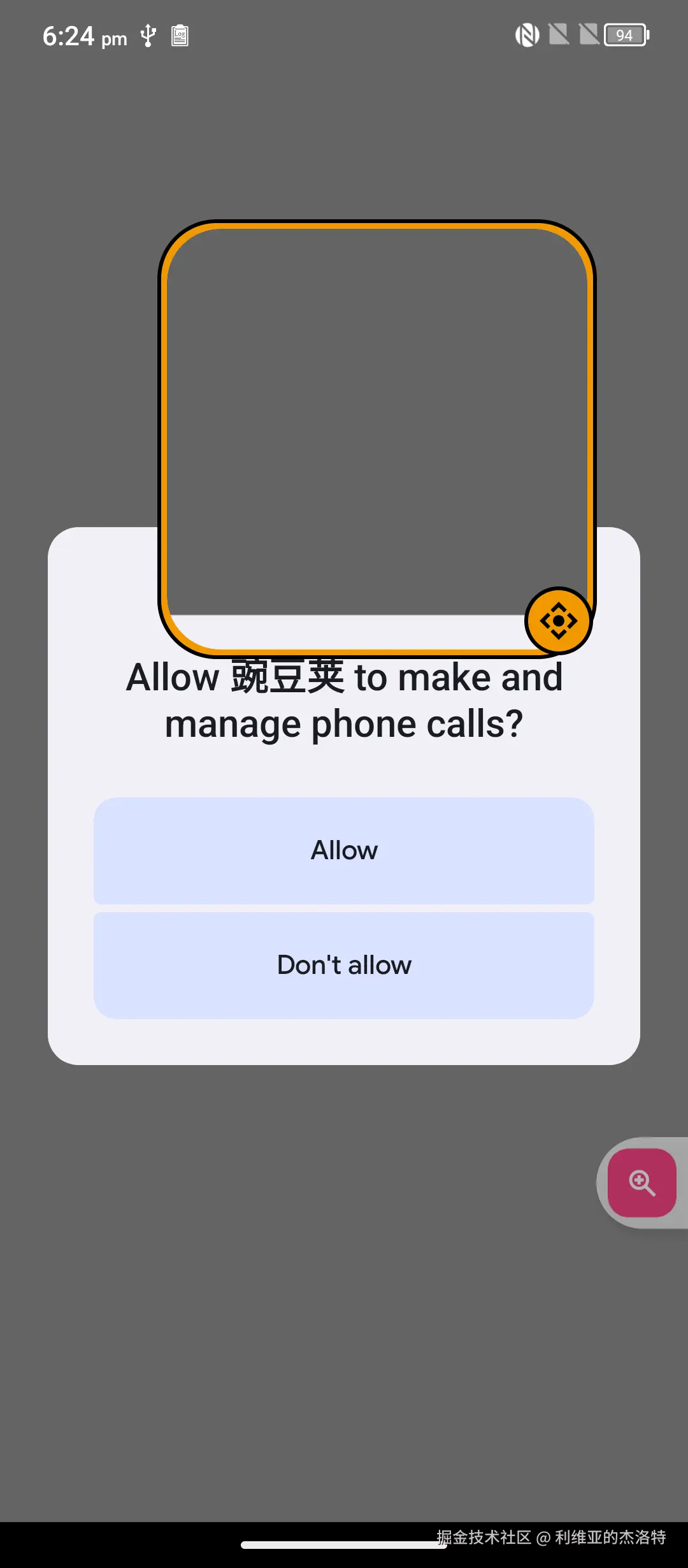如图,打开google的放大镜功能,然后将该放大镜和权限弹窗部分重合,会发现权限弹窗的按钮如“Allow”,点击无响应。