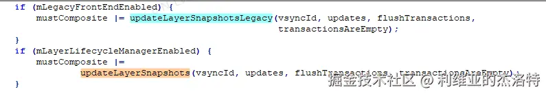具体走哪个流程,则是和SurfaceFlinger.commit的以下逻辑有关,受SurfaceFlinger.mLayerLifecycleManagerEnabled的控制: