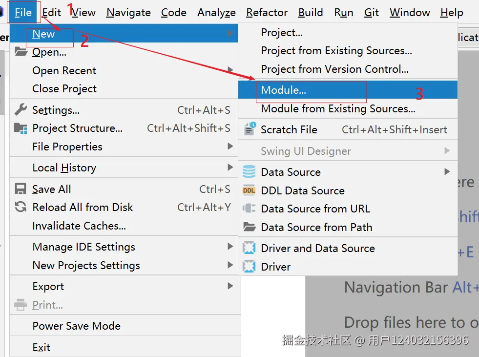 1、点击file==>点击new==>moudle