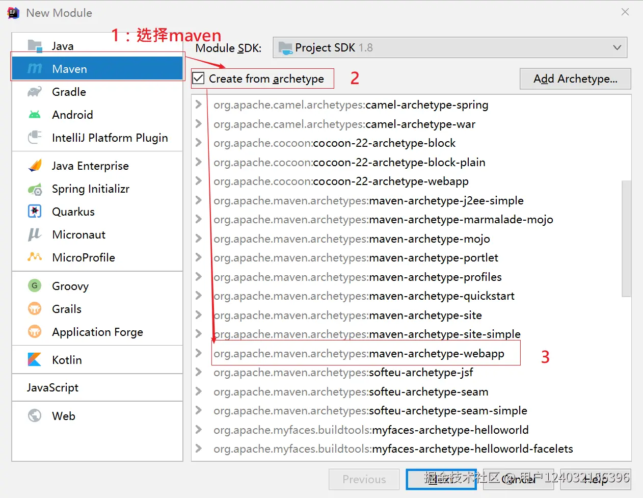 2、选择maven==>勾选Create from archetype==>maven-archetype-webapp==>下一步