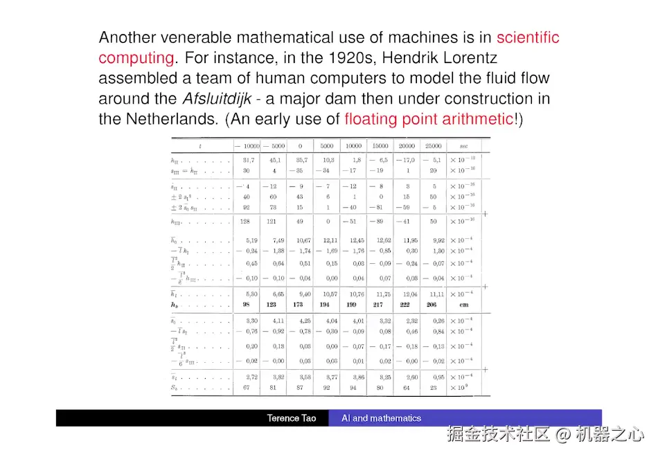把它输出给计算机,我们从上世纪 20 年代就开始做了。也许第一个真正进行科学计算的人是 Hendrick Lorentz。他的任务是建一个巨大的像办公室一样的东西,他们想知道水流的内部是怎么回事,所以他们必须建立一些流体方程模型。