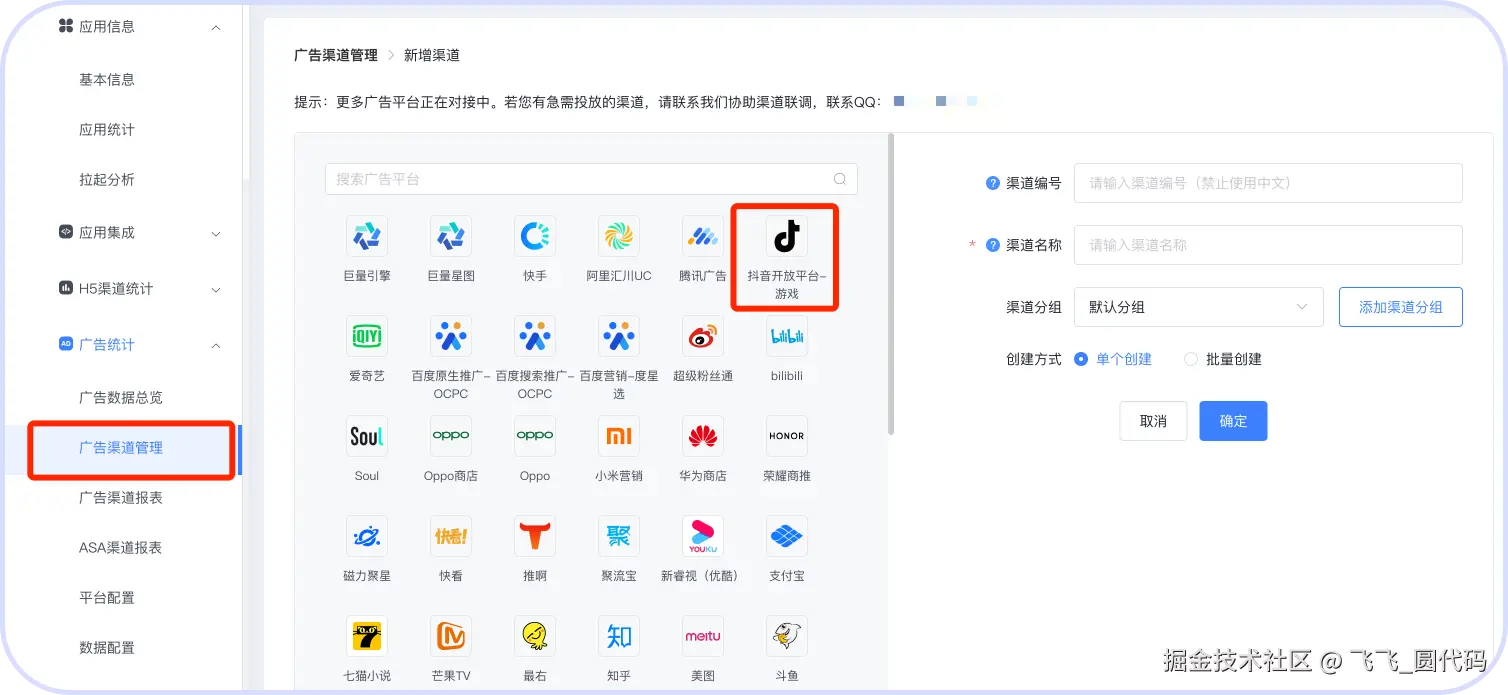 这里以广告归因监测平台openinstall为例,只需要集成相应的SDK,然后在后台“广告渠道管理”处找到抖音游戏图标创建渠道,即可生成监测链接。然后按照官方文档联调测试即可。