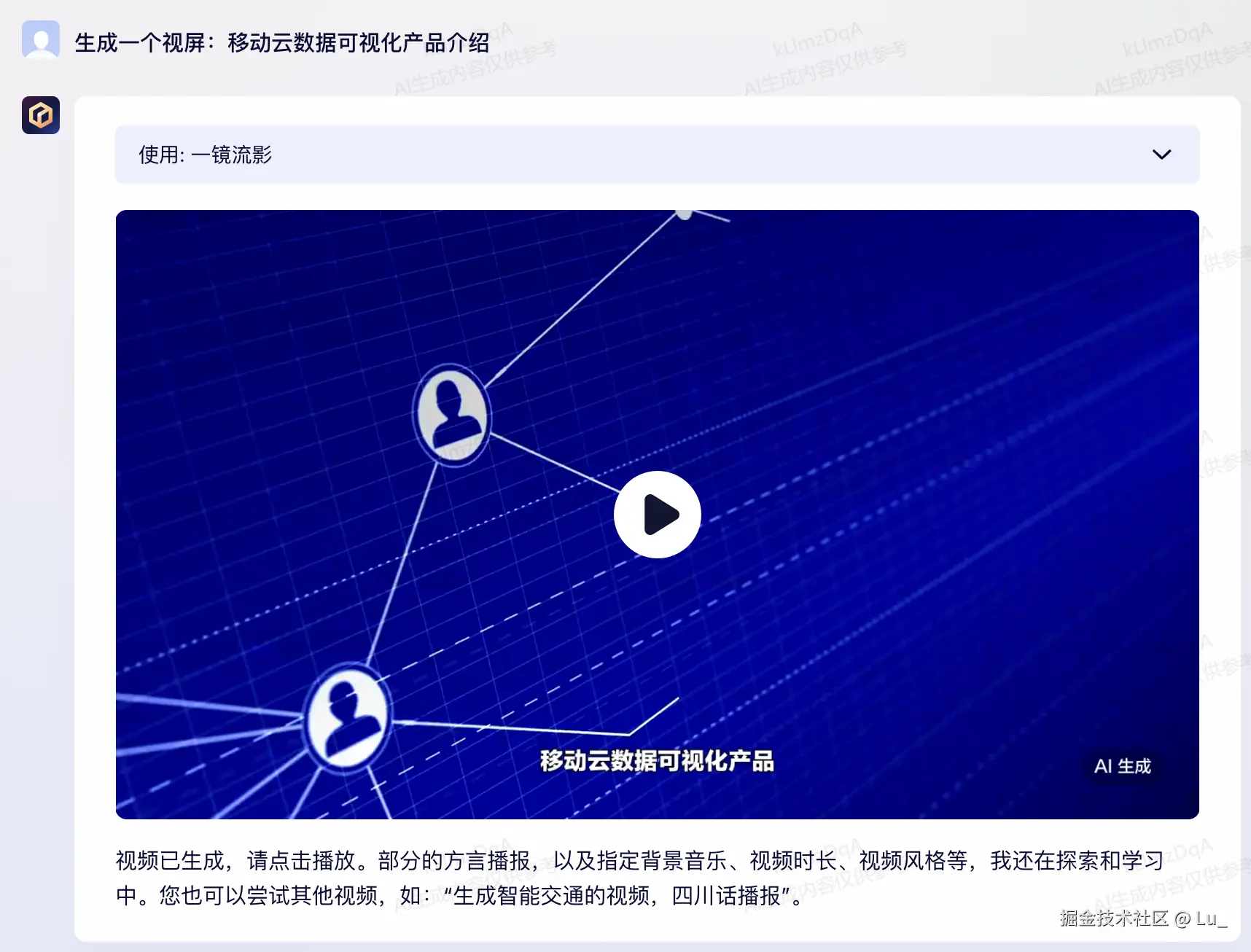 一镜流影是百度文心一言4.0会员专属的AI文字转视频工具,能够根据主题词、语句、段落篇章等文字描述内容,一键生成视频。