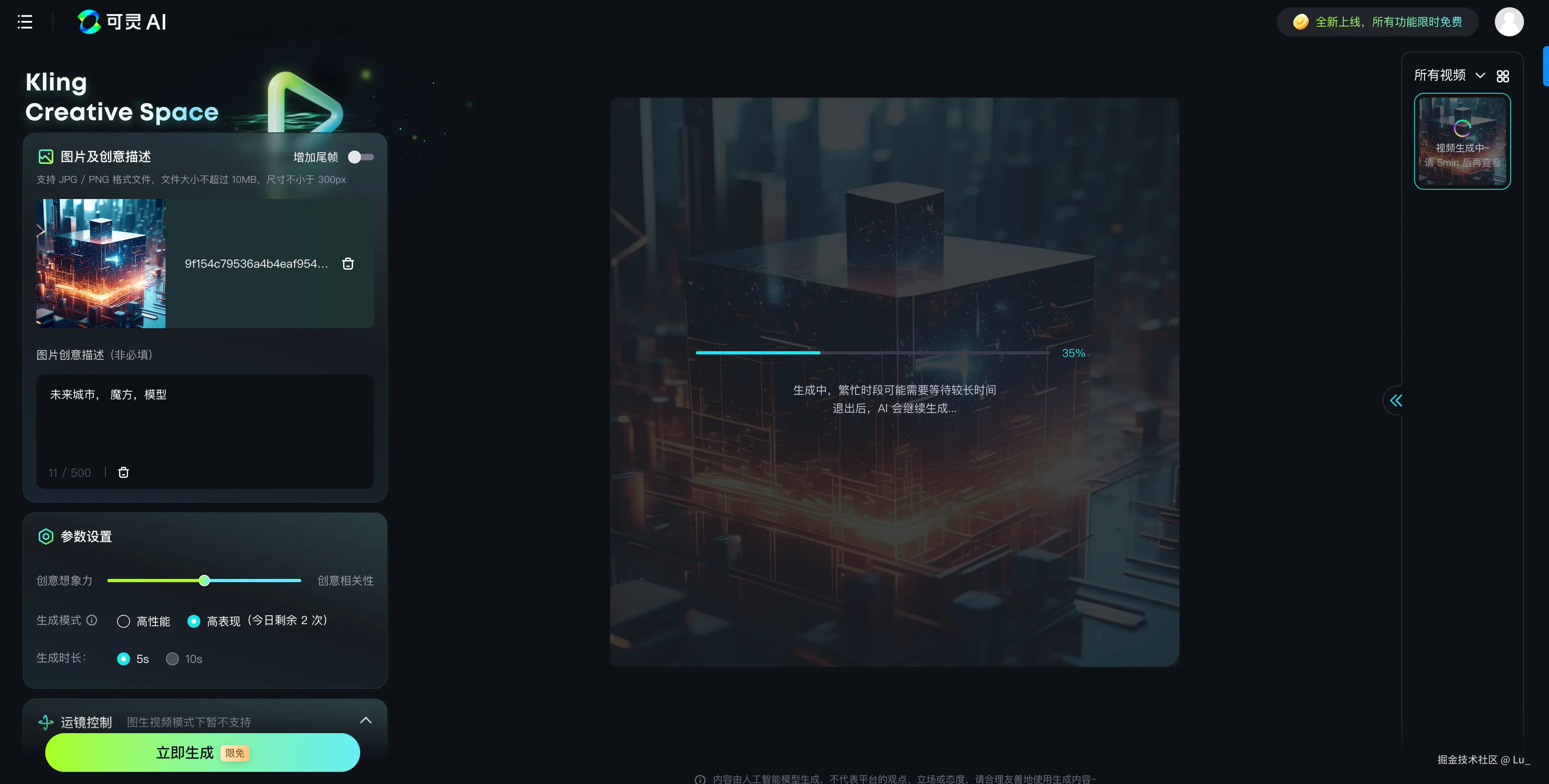 收费形式: 每天可以免费生成6个视频 ,支持付费增加视频生成数量。