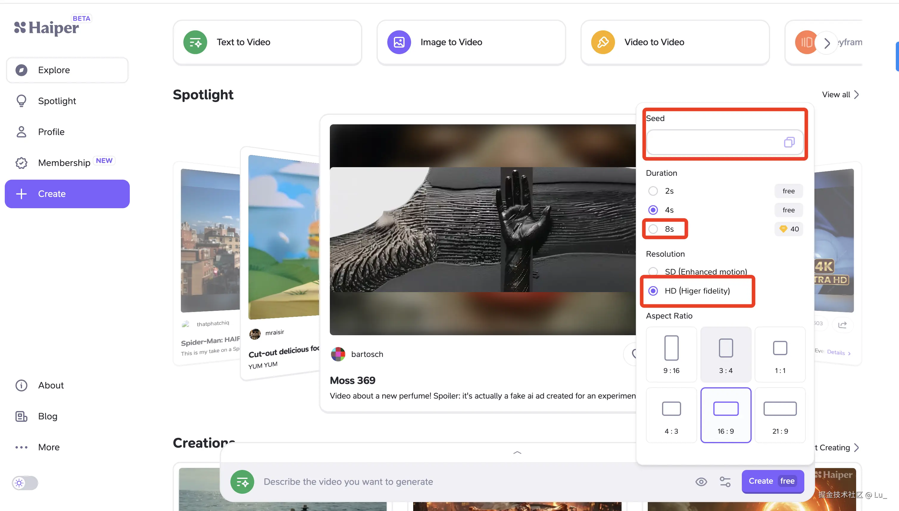 Haiper每天可允许用户生成大量最高4s的视频,但是生成8s的视频则需要一定的花费。视频清晰度不够,但在人像的流畅程度上,让人感到惊艳。