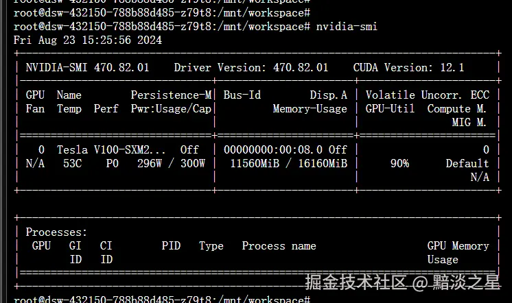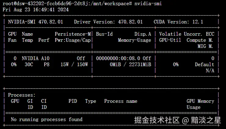 换A10显卡,这个有24G显存,不过申请好在服务器上显示只有22G。