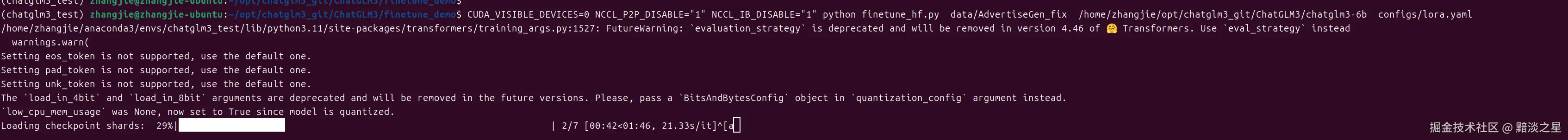 CUDA_VISIBLE_DEVICES=0 NCCL_P2P_DISABLE="1" NCCL_IB_DISABLE="1" python finetune_hf.py data/AdvertiseGen_fix ../chatglm3-6b configs/lora.yaml