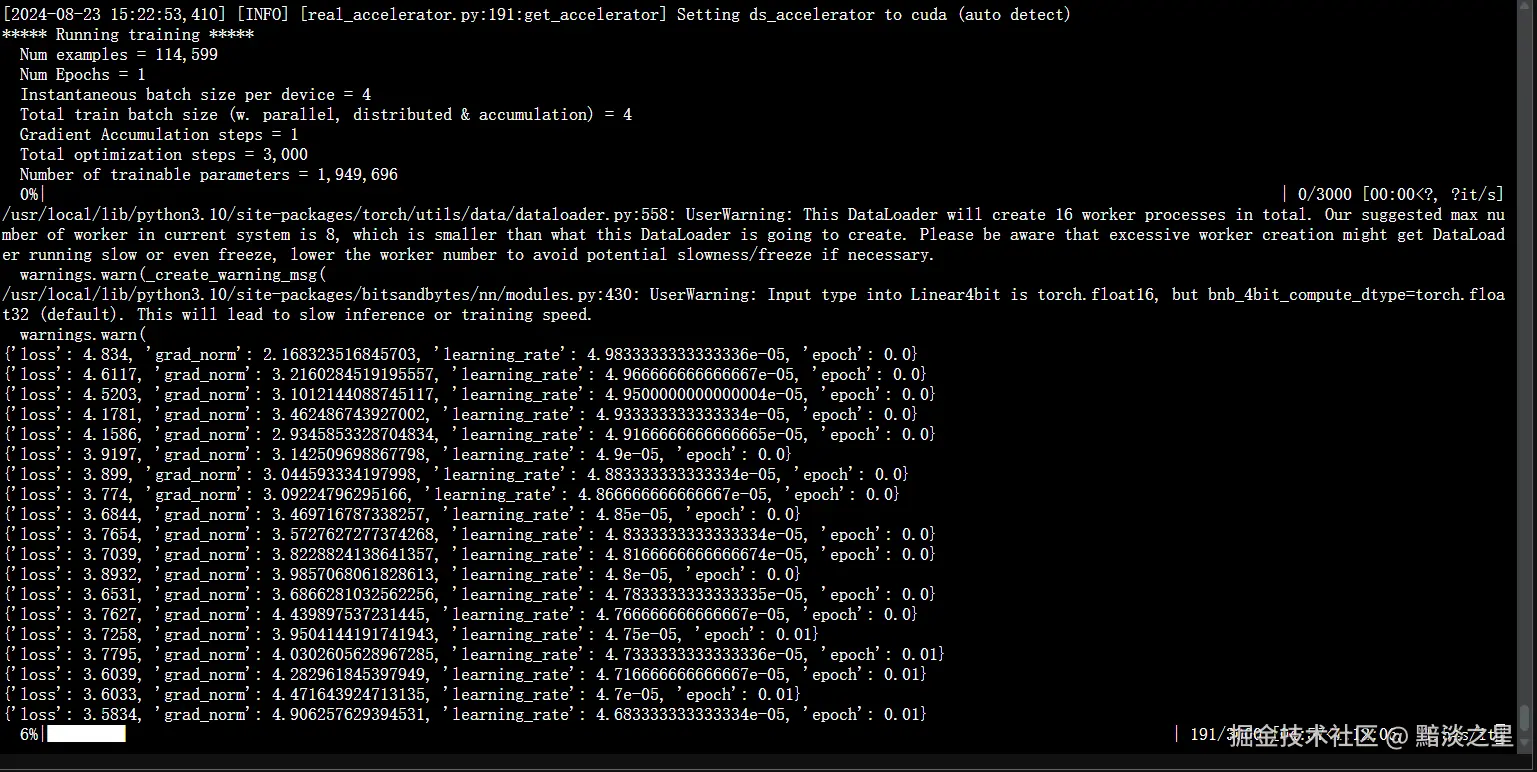 然而量化后微调进度到达17%会报错,显示代码传参有问题,但是是底层代码了,直接放弃不看了。(后面在A10上也复现了,这个17%是刚好checkpoint到500到存储中间结果,然后环境自带的依赖不兼容导致的问题,解决方案就是用conda自己装依赖)