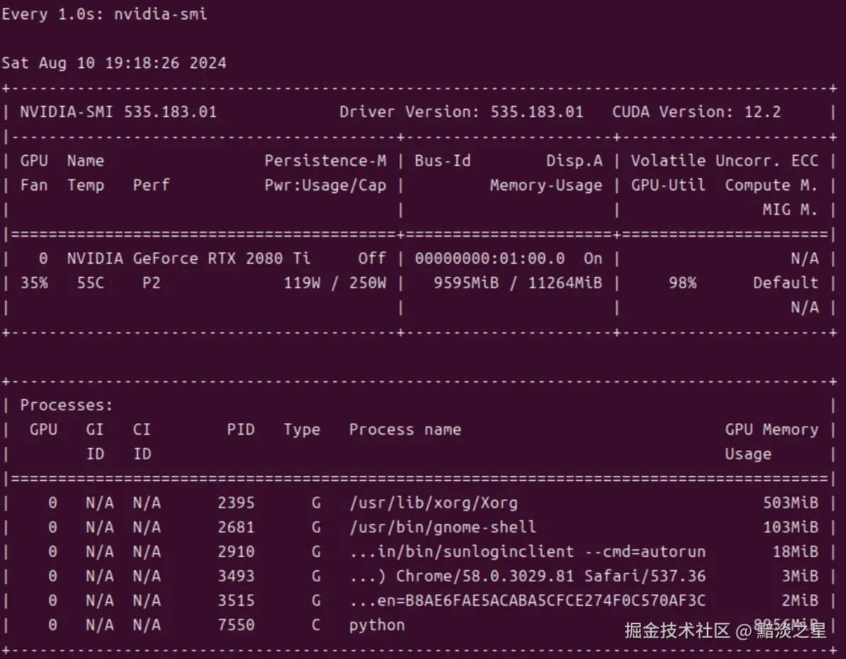 此时可以通过nvidia-smi查看最高兼容的cuda版本