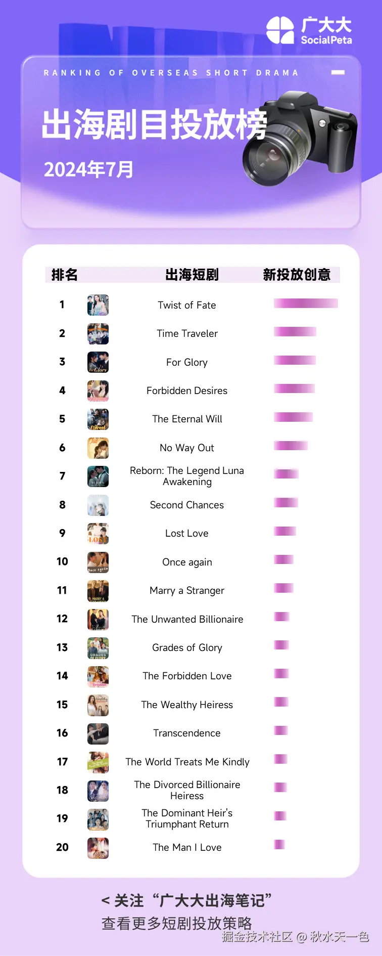 广大大发布7月最新出海短剧剧目榜单,实时追踪海外短剧市场动向。