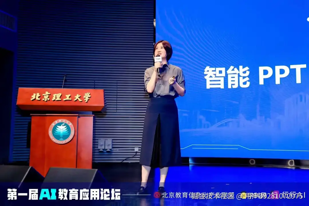 彩漩科技亮相本次论坛,并由彩漩科技联合创始人李雪岩做了精彩演讲。李雪岩以“AI 赋能教育:智能 PPT 的创新应用”为主题,深入讲述了人工智能如何助力教育创新。在演讲中,她还特别介绍了彩漩科技的两款核心产品:彩漩 PPT 和歌者 PPT,展示了它们如何通过 AI 技术提升教育资源的使用效率,帮助教育者更高效地制作和管理 PPT 课件,显著提升整体教学效果。