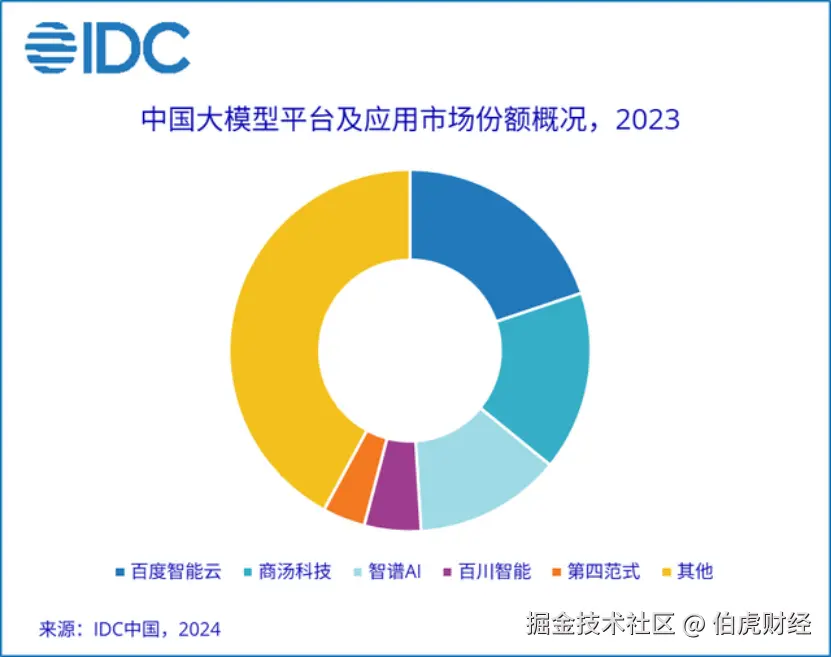 最后,即便大模型初创企业克服以上重重难关,但企业开发基础模型往往更青睐于老牌云厂商。数据显示,2023年大模型市场中,百度智能云、商汤、智谱AI的市场份额排在前三,加起来占据了市场的半壁江山。