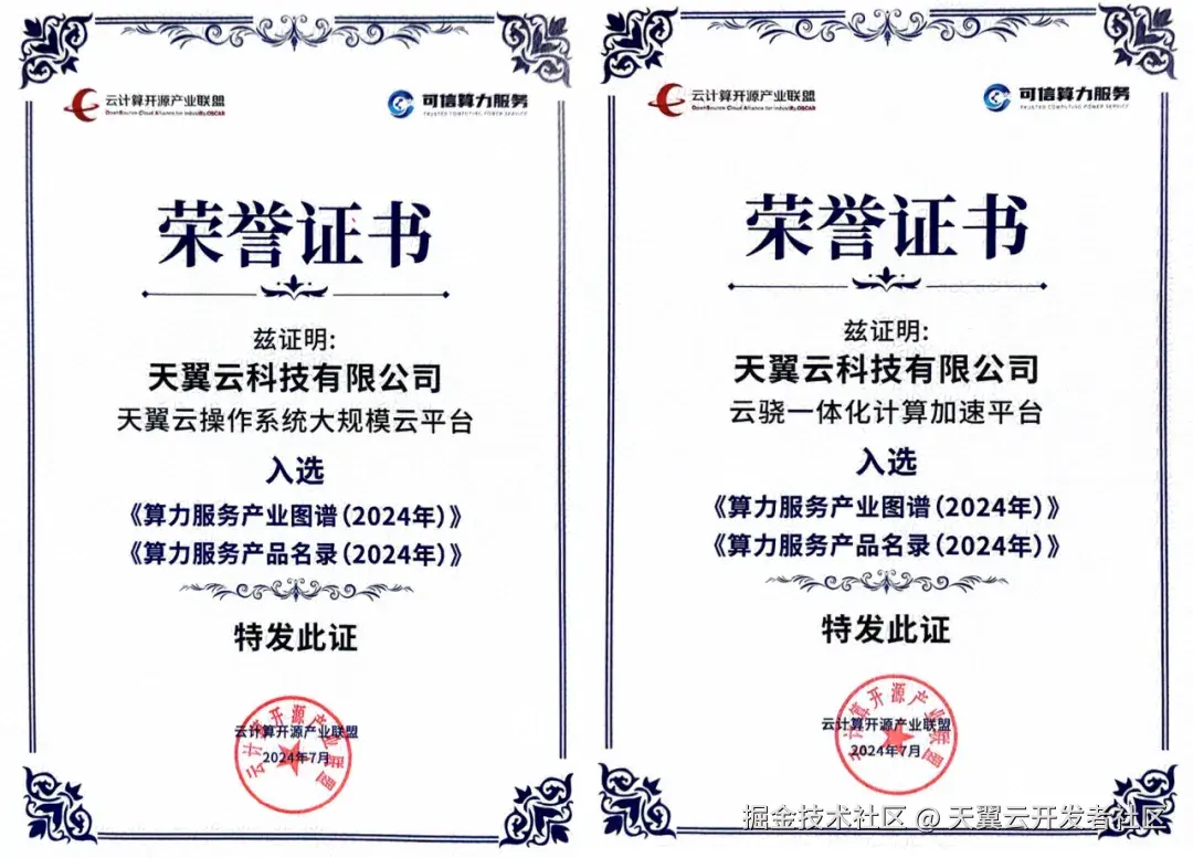 为更加清晰、客观公正地展现算力服务产业中各领域的代表性企业以及打造算力服务标杆产品集合,云计算开源产业联盟于2023年6月启动了首个算力服务产业图谱及产品名录编制工作。经过公开征集、企业自主申报、产品调研及专家评审,《算力服务产业图谱(2024年)》及《算力服务产品名录(2024年)》于今年7月在第11届可信云大会正式发布。其中,天翼云操作系统大规模云平台(基础服务领域)、天翼云一体化计算加速平台(融合调度、AI赋能领域)成功入选,彰显了天翼云在算力服务领域的研究成果获权威认可,起到了行业示范引领作用,为用户在算力服务关键应用节点的产品、服务选型提供有力参考。