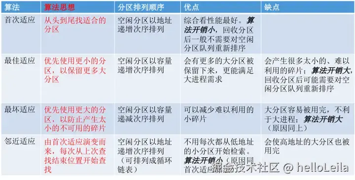 缺点:每次都选最小的分区进行分配,会留下越来越多的、很小的、难以利用的内存块。因此这种方法会产生很多的外部碎片。