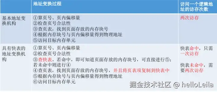 分段:第一次访存——查内存中的段表,第二次访存——访问目标内存单元。总共两次访存