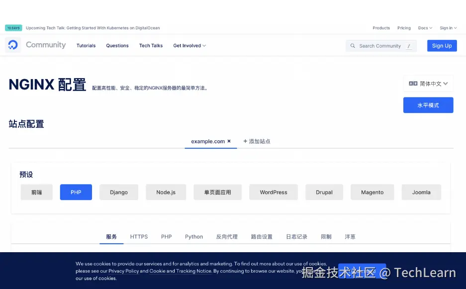 如果你想在线进行配置,只需要打开网站:nginxconfig.io/,按照自己的需求进行操作就行了