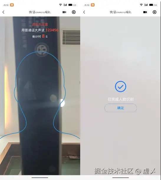 小程序录制视频;10-30秒;需要拍摄人脸,大声朗读数字(123456)这种。