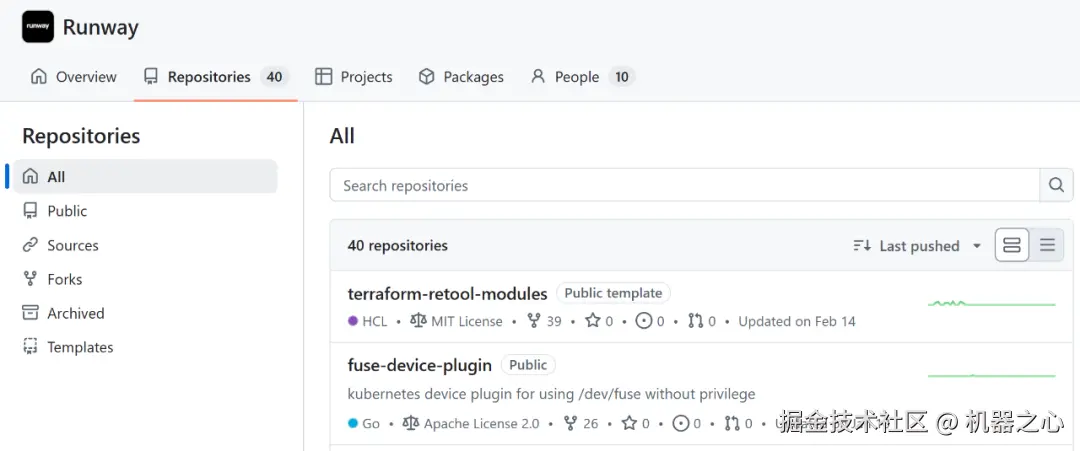 目前,Runway 在 GitHub 上的代码库有 40 个。