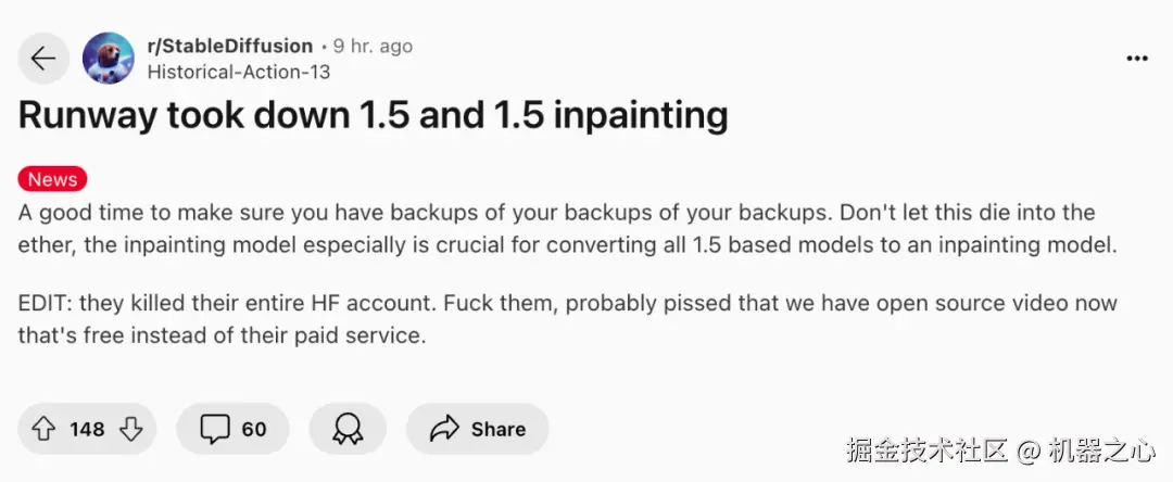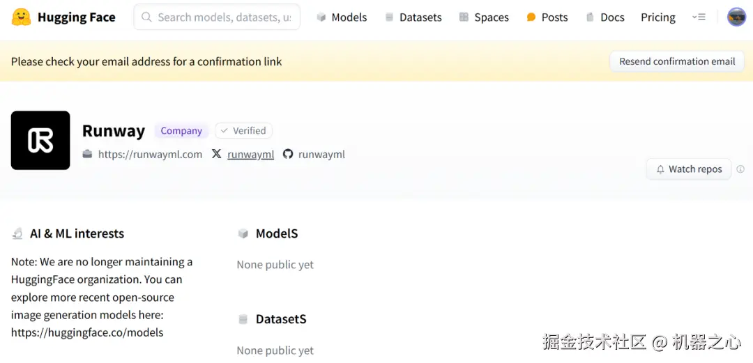 Runway 就删除、清空了他们在 HuggingFace 上的所有内容。