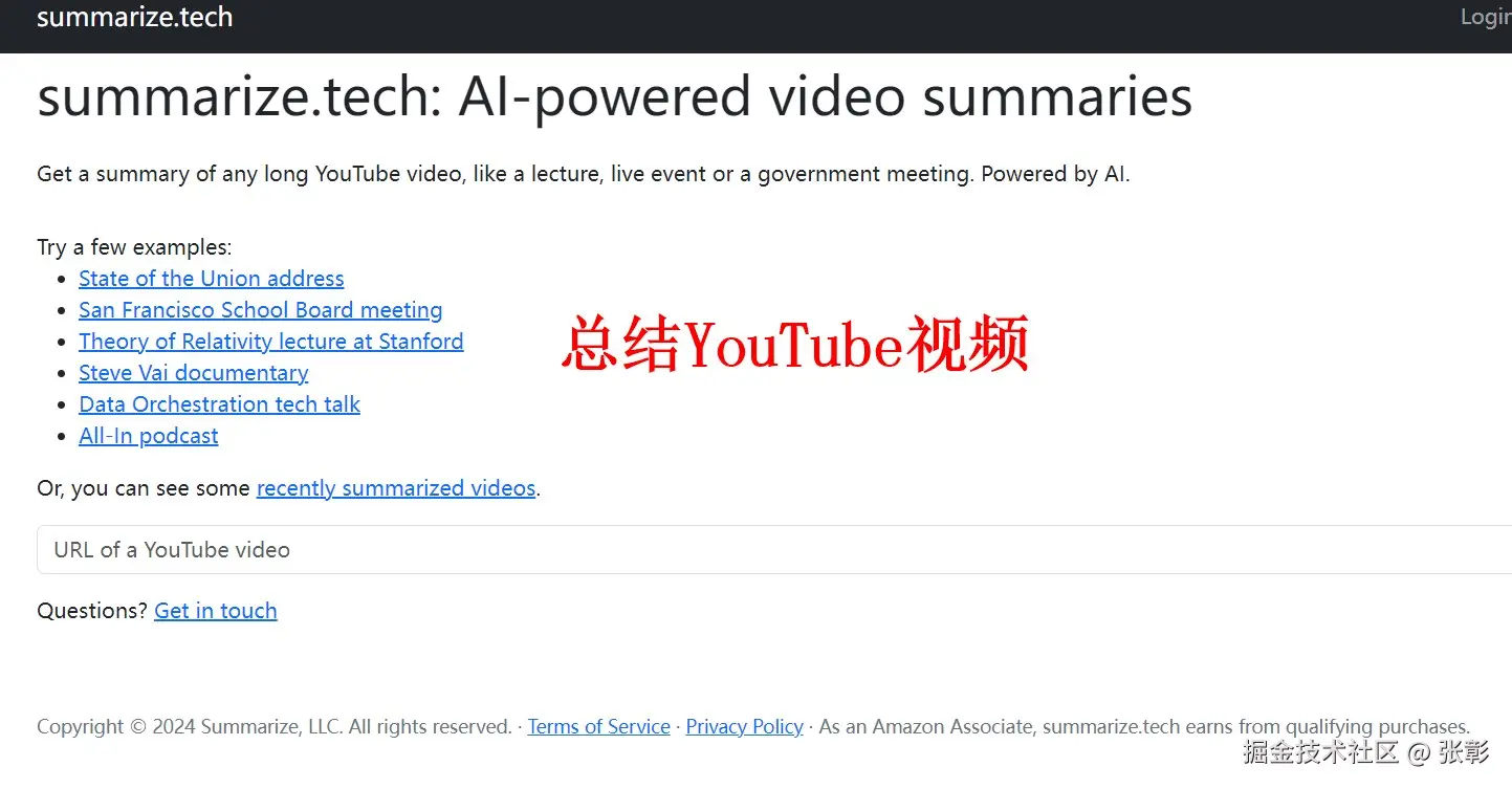 自动生成文本总结:针对长视频和音频内容,summarize.tech会提取关键内容并生成简明的文本总结,省去逐字逐句观看或聆听的时间。
