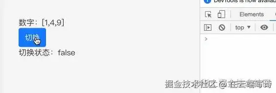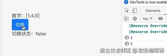 我们简单的写了个 usePow,我们通过 usePow 给所传入的数字平方, 用切换状态的按钮表示函数内部的状态,我们来看看此时的效果: