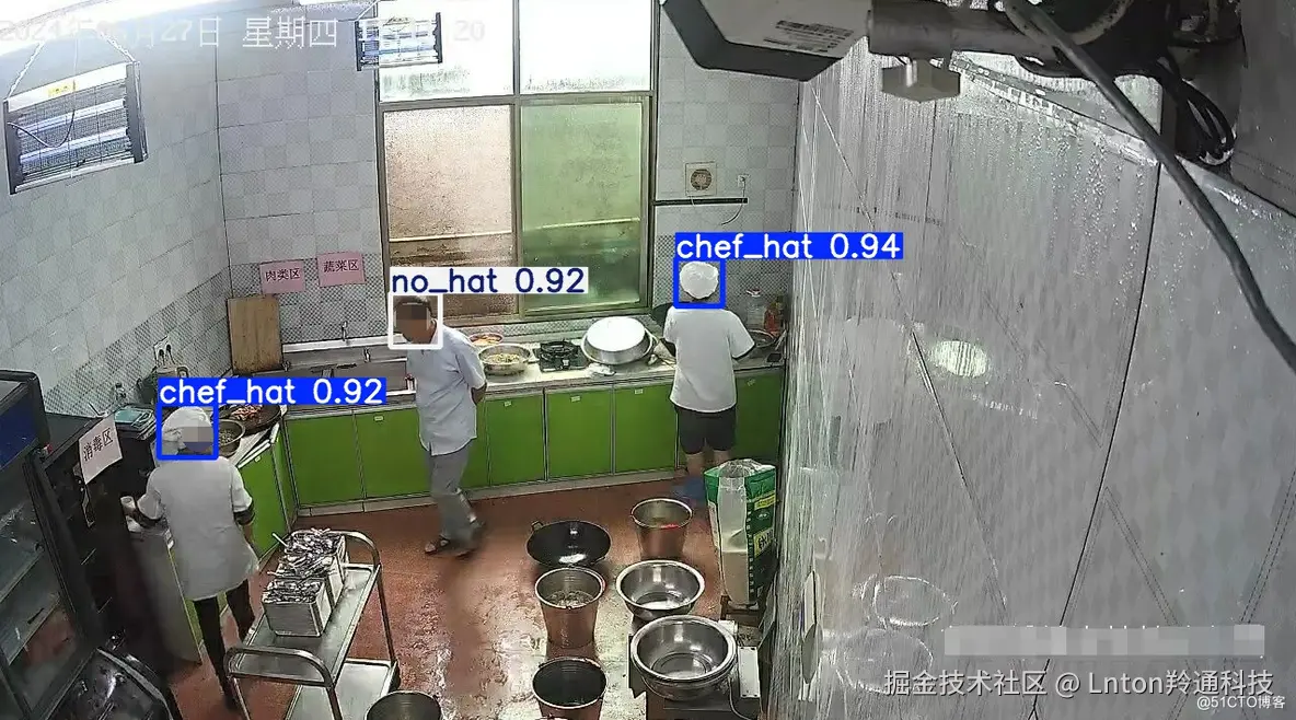1.实时监控系统:在厨房安装摄像头,通过运行厨帽检测算法,可以实时监控厨师是否佩戴厨帽,一旦发现有违规行为,系统可以自动发出警报。