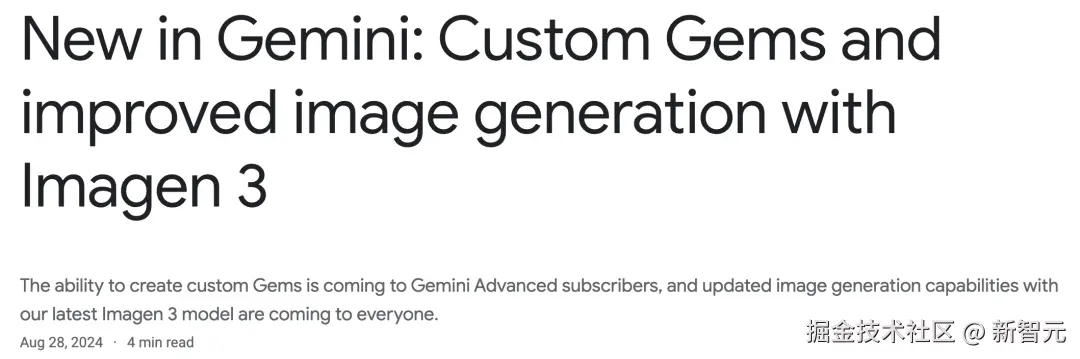 **【新智元导读】**时隔 5 个月,Imagen 3 终于可以人人可用了,而且还能支持是生成人物图像。与此同时,谷歌宣布了 Gemini AI 的重大升级,全新 AI 定制助手 Gems 已经面向 150 多个国家推出。