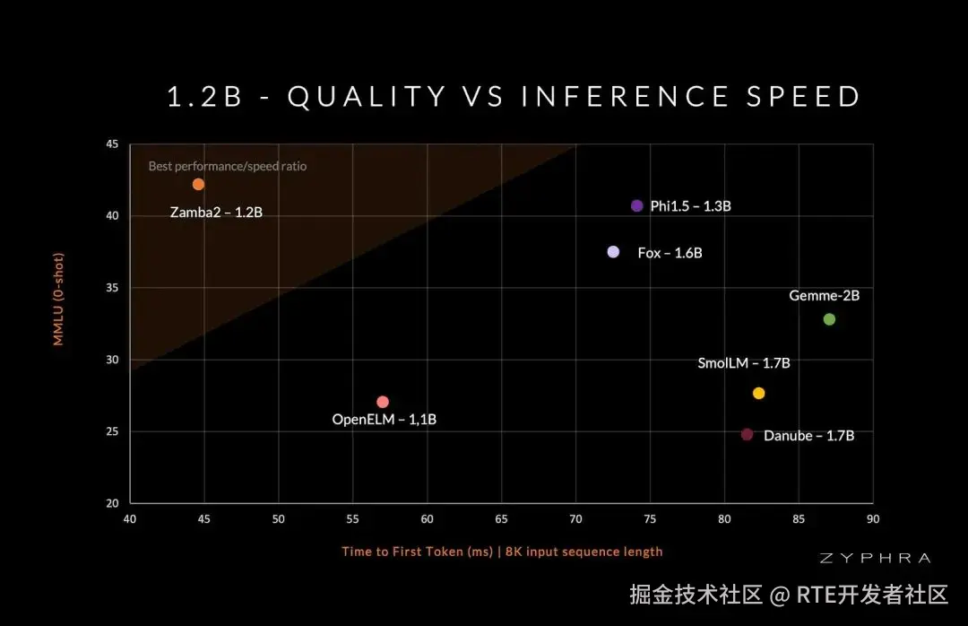 Zamba2-mini 1.2B 主要通过高度优化的架构实现,融合了不同神经网络设计的优势,既能保持大型密集变压器的高质量输出,又能以更小模型的计算和内存效率运行。