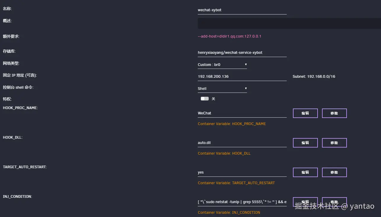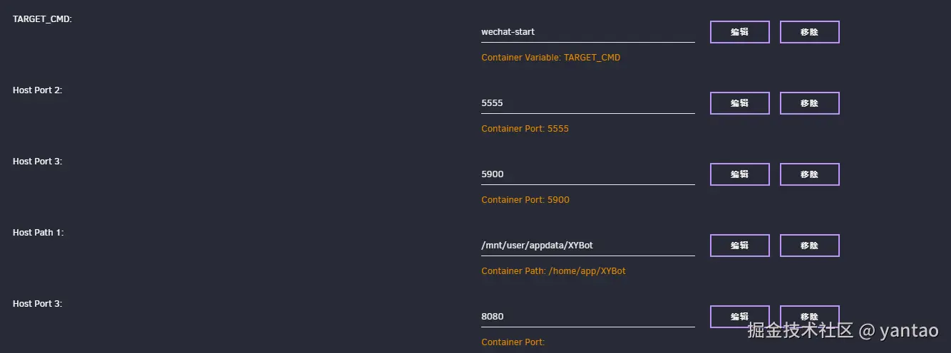 将以下内容放到/boot/config/plugins/dockerMan/templates-user 文件名:my-wechat-xybot.xml