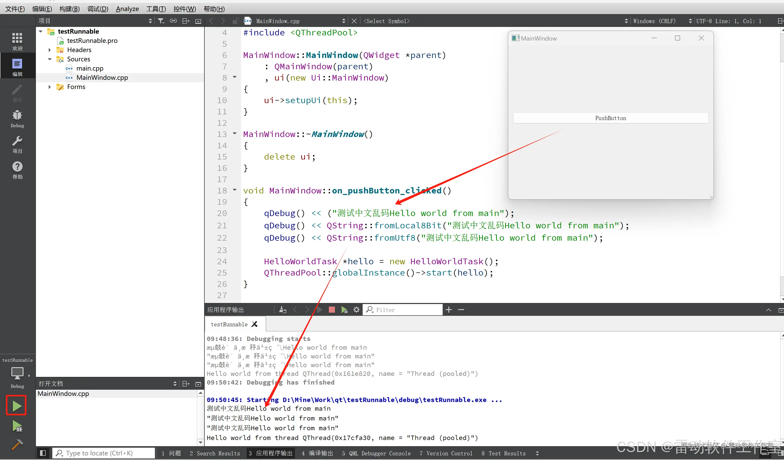 现象如下,调试模式下qDebug输出中文乱码