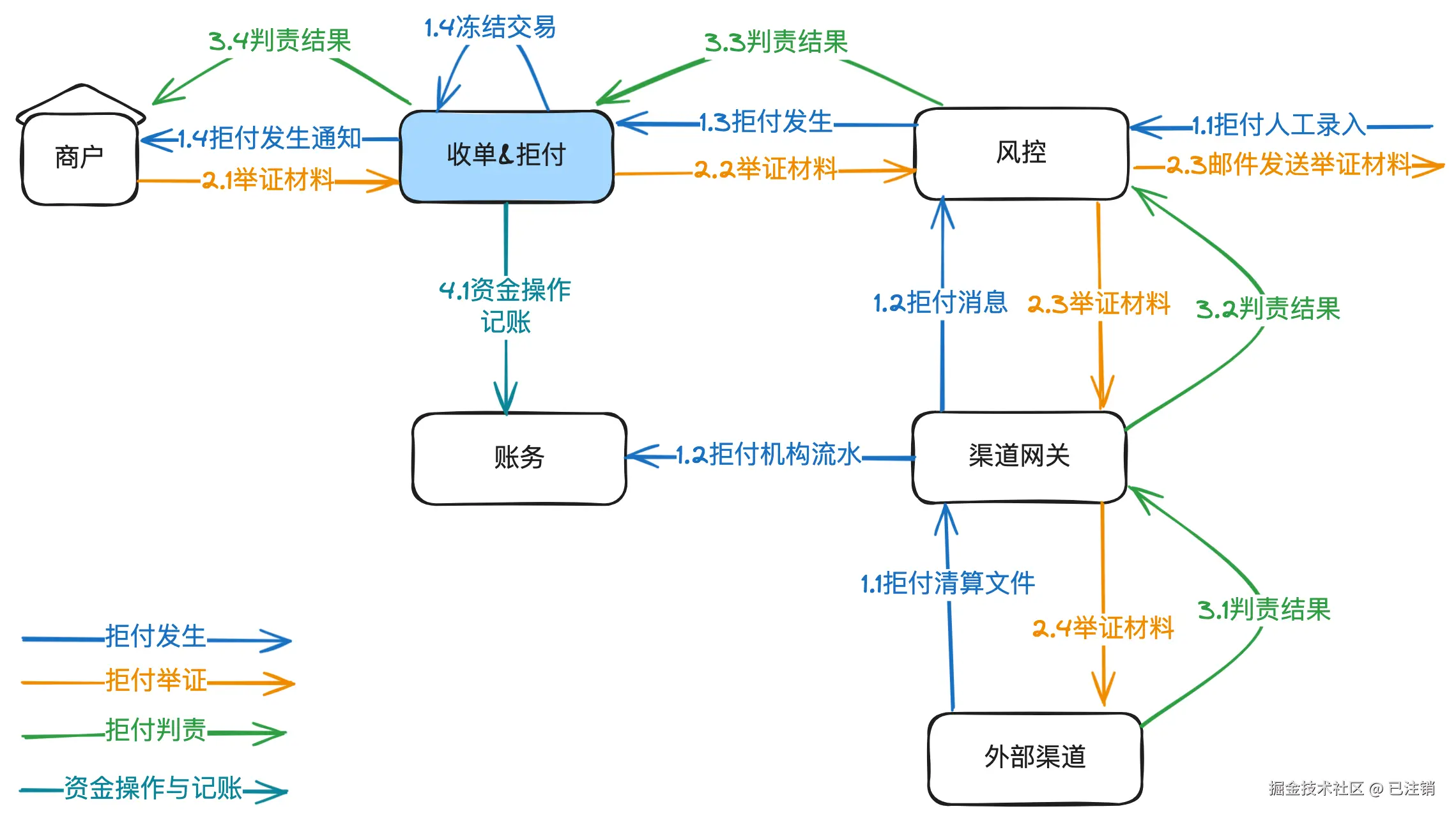拒付除了和收单结算紧密相关外,还和风控系统紧密相关,因为交易是由风控系统来判断风险的,如果这个用户的卡被盗刷,那风控系统的实时风控就不应该通过。如果是正常的购买,那风控系统就应该收集证据去抗辩。